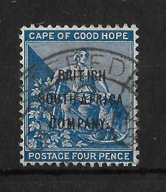 Rhodesia 1896 Four Pence Cape overprint with a REGISTERED postmark quantity