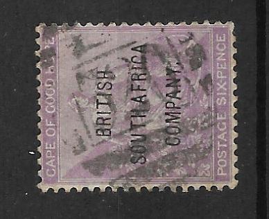 Rhodesia 1896 Six Pence Cape overprint with Barred Oval 320 postmark.