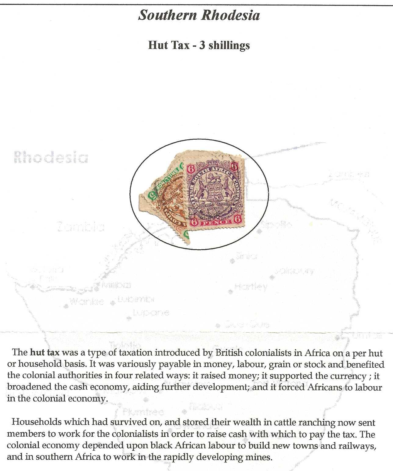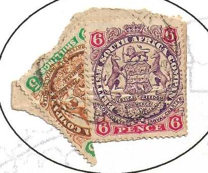 Rhodesia 1896 Three Shillings Hut Tax with Five Shillings bisect used on piece very unusual.