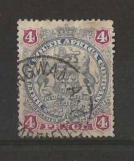 Rhodesia 1897 Four Pence Large Arms with INGWANIA no date (SC) postmark