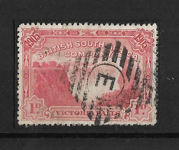 Rhodesia 1905 Victoria Falls One Penny with Barred Diamond E postmark. Rated very rare.
