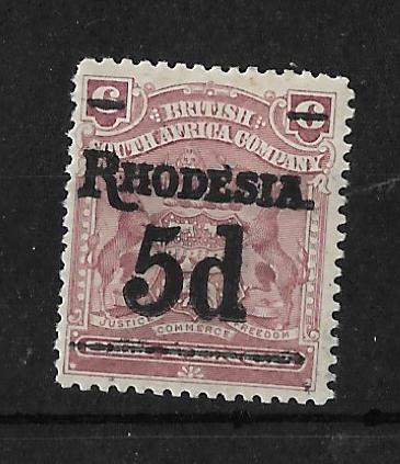Rhodesia 1909 Five Pence on Six Pence surcharge in violet overprint mounted mint. SG 114a. Has expertising mark on back.