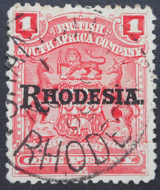 Rhodesia 1909 One Penny used. Stamp is good/fine used with a SHANGANI Code I Month Day (SC) postmark.
