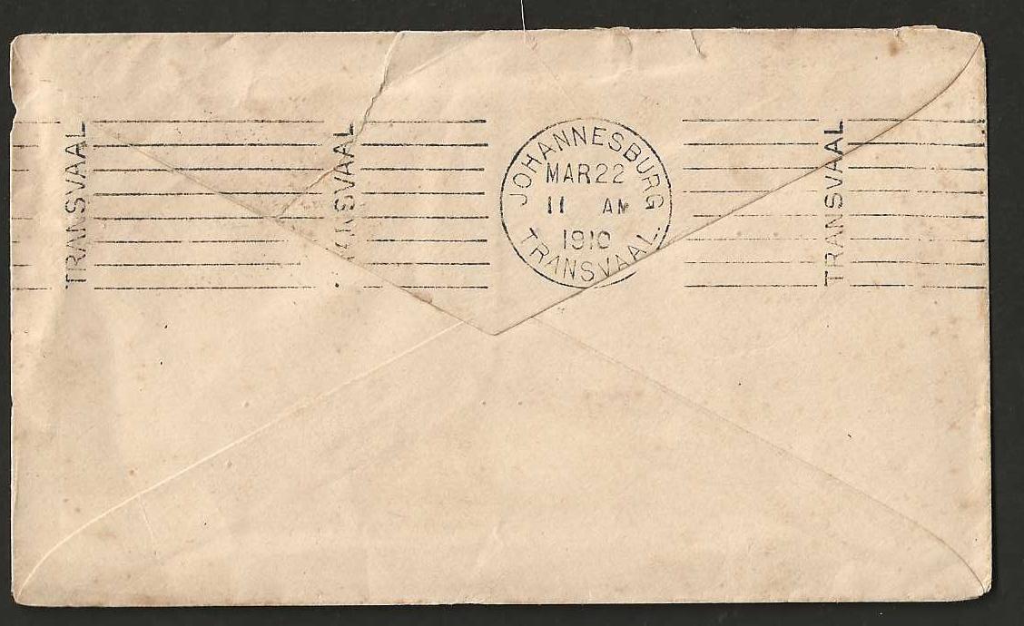 Rhodesia 1909 uprated Postal Stationary envelope used at Broken Hill, sent to South Africa.
