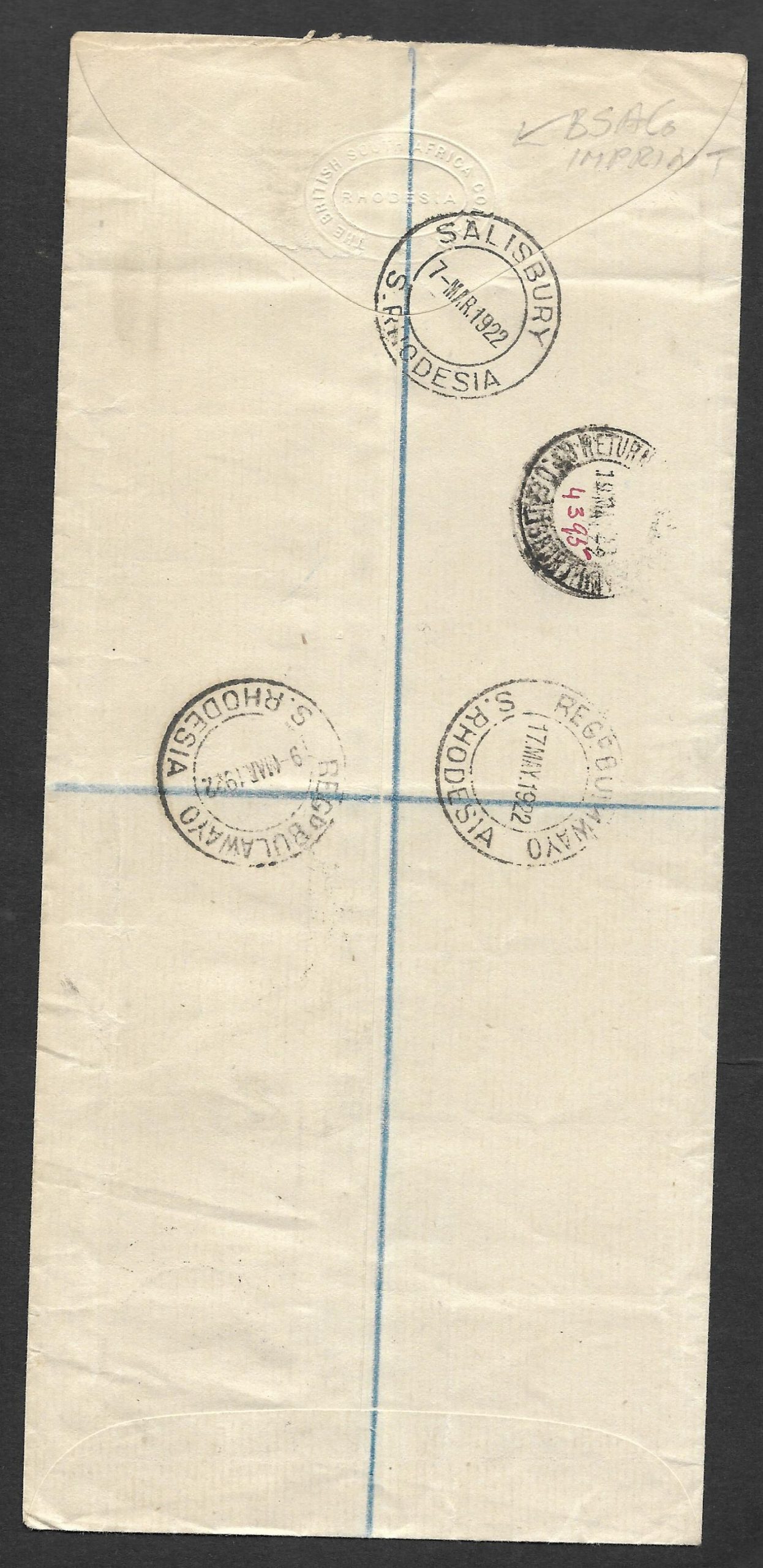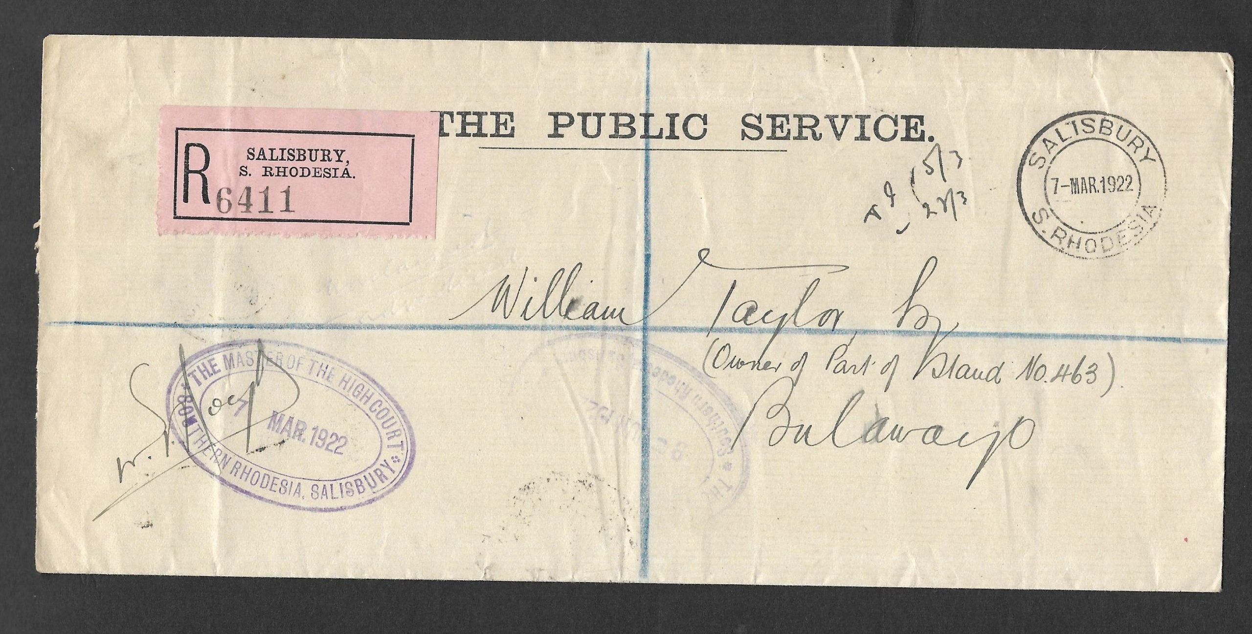 Rhodesia 1922 On The Public Service registered cover with High Court cachet and contents, very interesting.