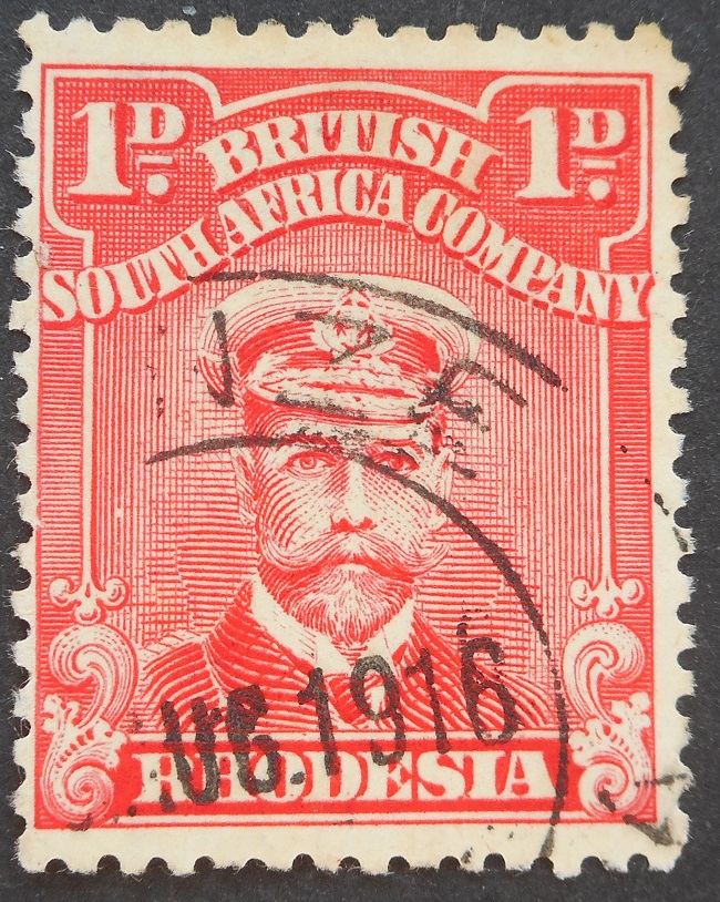 Rhodesia Admiral One Penny used. Stamp is good/fine used with a MONZE Type 7 (4 digit year) (DC) postmark. RSC Memoir 27, rated very rare.