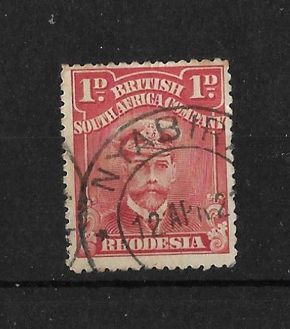 Rhodesia Admiral One Penny with a NYABIRA (DC) postmark dated 12 APR 23. Rated very scarce.