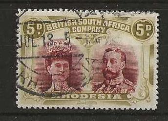 Home / New Items / Rhodesia Double Head Five Pence perf 15 SG 175 used