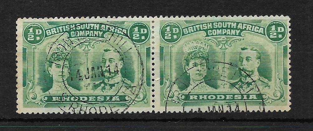 Rhodesia Double Head HalfPenny pair with an IRON MINE HILL (DC) postmark. Dated 14 JAN 1914. RSC Memoir 34 rated very rare.