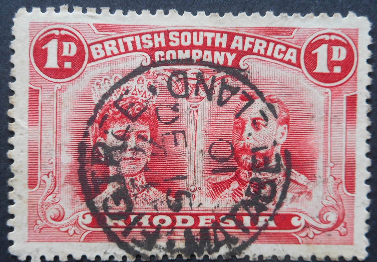 Rhodesia Double Head One Penny used with a FIGTREE Month and Day inverted (SC) postmark. RSC Memoir 34 rated very rare.