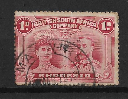 Rhodesia Double Head One Penny with a MAKWIRO (DC) with Blank after day and missing K in MAKWIRO. Thirdr reported with blank after day. Beleived to be the only one with missing K. Stamp has some foxing and is off centre.