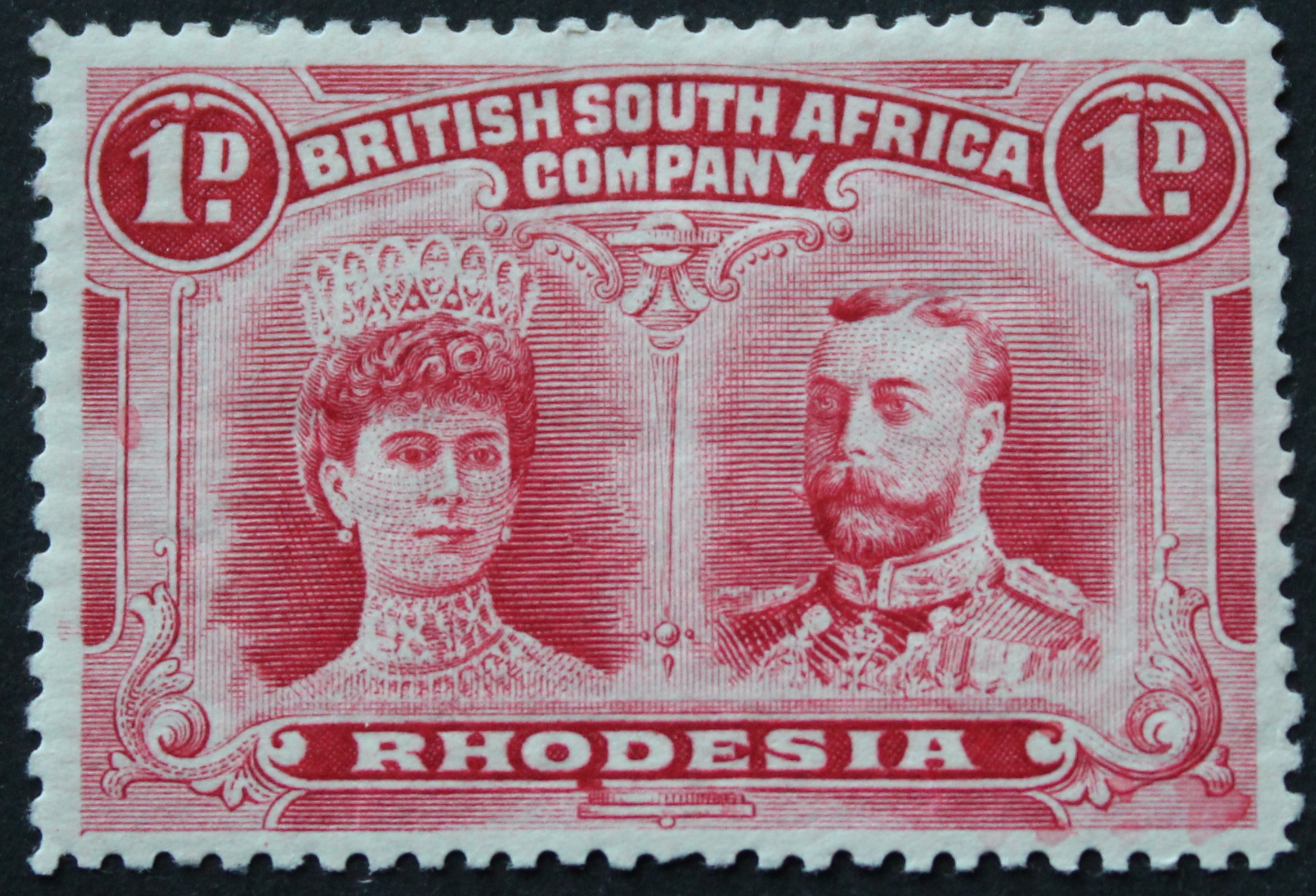 Rhodesia Double Head One Penny with OD flaw, position 74 mint. Stamp is mounted mint/mint hinged. SG 123.
