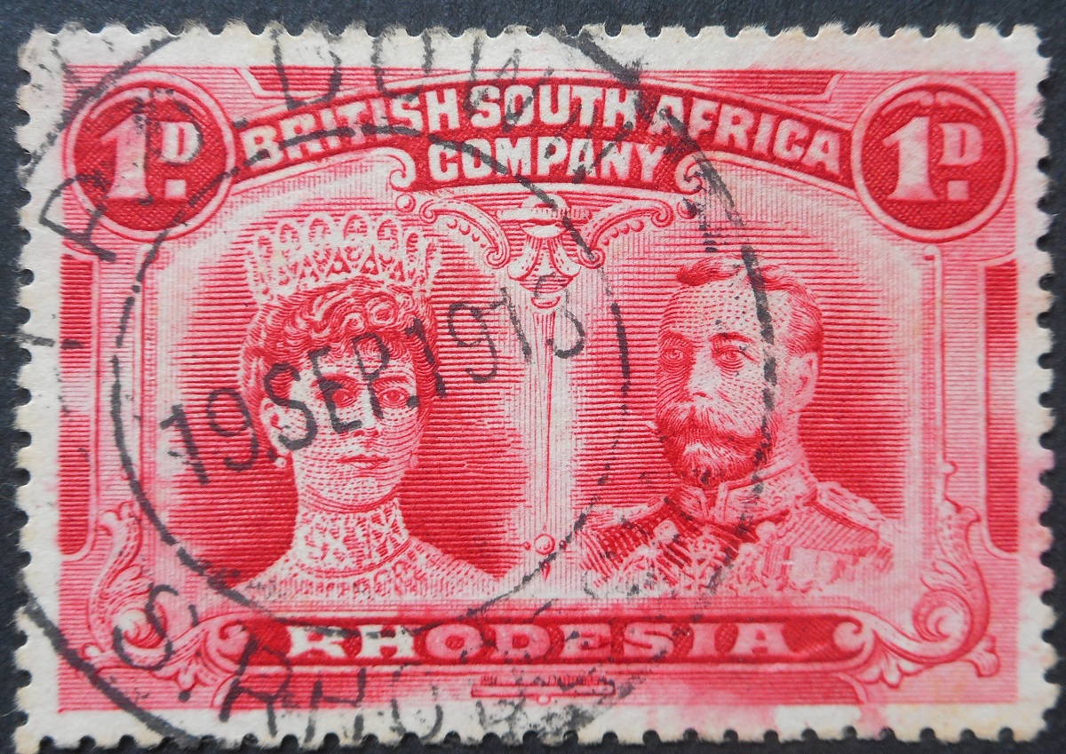 Rhodesia Double Head One Penny with TPO DOWN No stop after T (DC) postmark. RSC Memoir rated very rare.