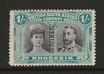 Rhodesia Double Head One Shilling overprinted SPECIMEN mounted mint
