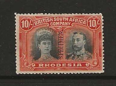 Rhodesia Double Head Ten Shillings overprinted SPECIMEN mounted mint