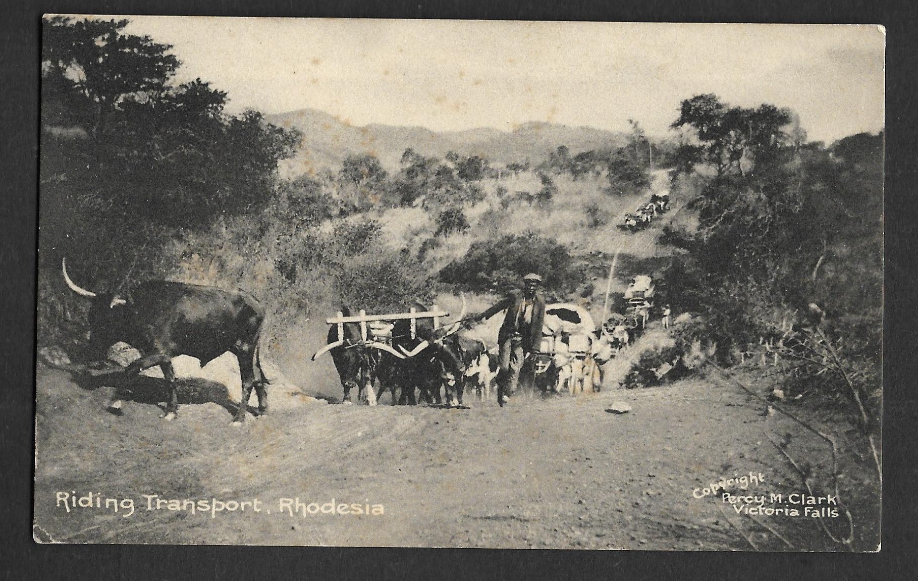 Rhodesia early unused postcard of Transport train in Rhodesia by Percy M Clarke.
