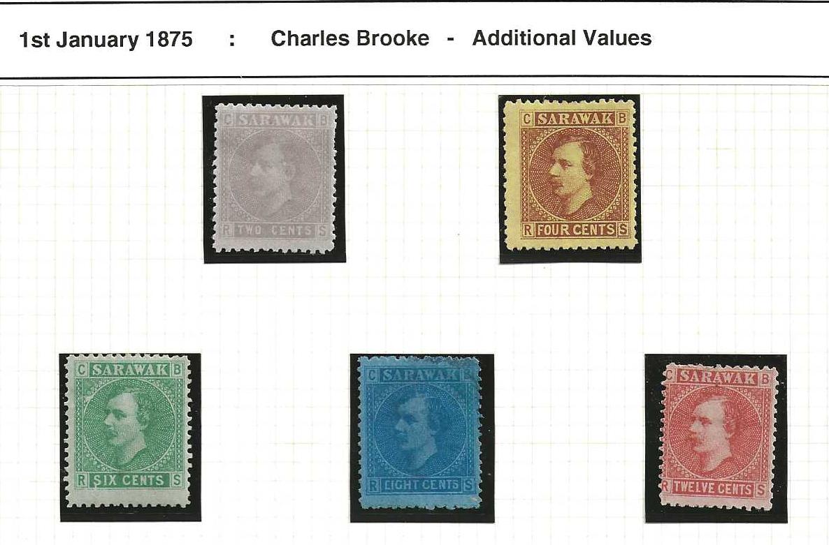 Sarawak 1871 Two Cents to Twelve Cents mint. Stamps issued with no gum. SG 3/7. Cat £55.