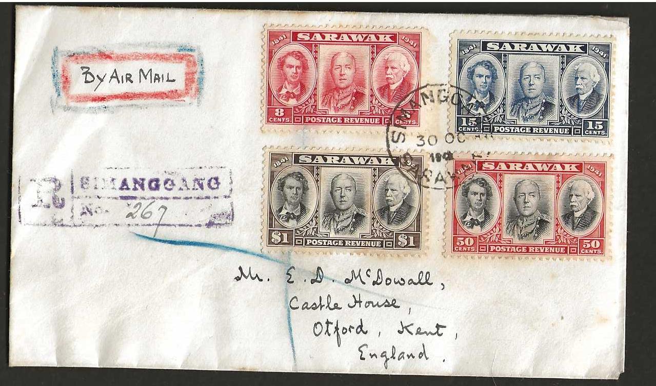 Sarawak 1946 Registered cover with Centenary Issue to England.