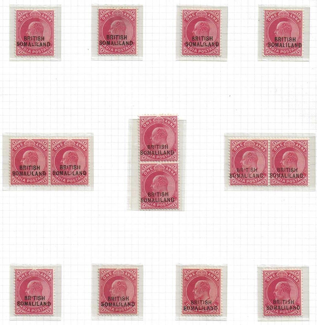 Somaliland Protectorate 1903 Edward VII One Anna on page with malformed and broken type mounted and unmounted mint. SG 26.