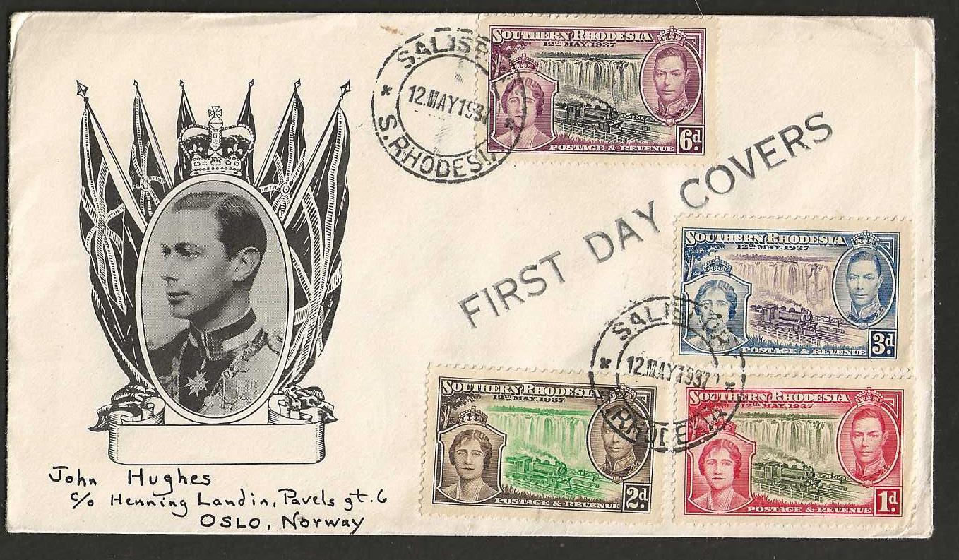 Southern Rhodesia 1937 George VI Coronation First Day Illustrated cover to Norway, unusual.