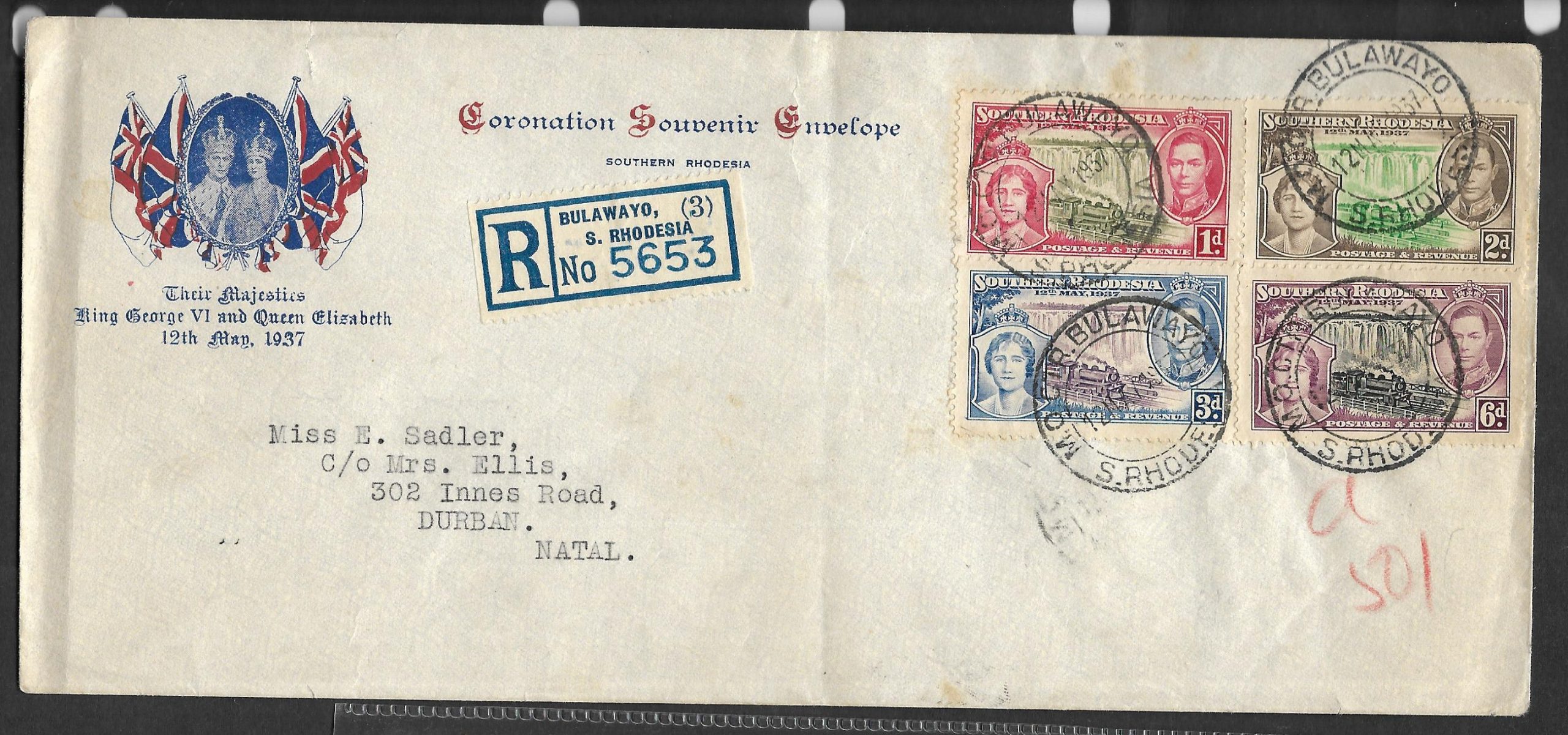 Southern Rhodesia 1937 Illustrated Coronation cover with M O CTR Bulawayo postmark