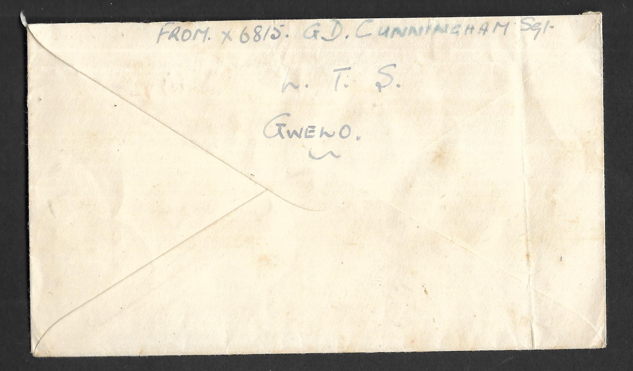 Southern Rhodesia 1943 On Active Service local cover with Leader Training School cachet. Has been folded.