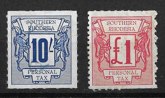 Southern Rhodesia 1961 Personal Tax Ten Shillings and One Pound used quantity
