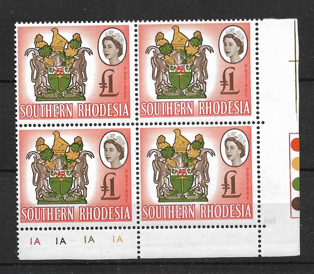 Southern Rhodesia 1964 One Pound Plate Block SG 105 unmounted mint quantity