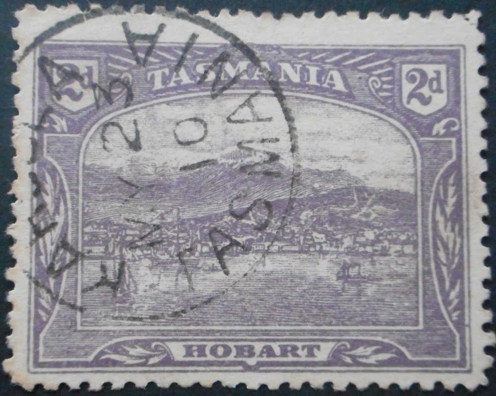 Tasmania 1910 Two Pence with a KAROOLA postmark quantity