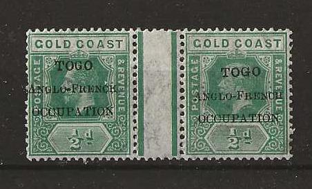 Togo 1915 George V Anglo/French Occupation Halfpenny pair with normal thin G in Togo flaw unmounted mint. SG H34b. Cat £6.