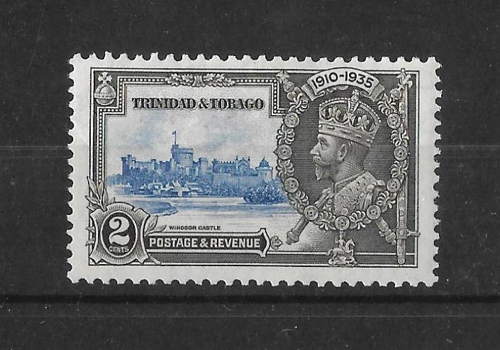 Trinidad and Tobago 1935 George V Silver Jubilee Two Cents with lightning conductor flaw mounted mint. SG 239c. Cat £50.