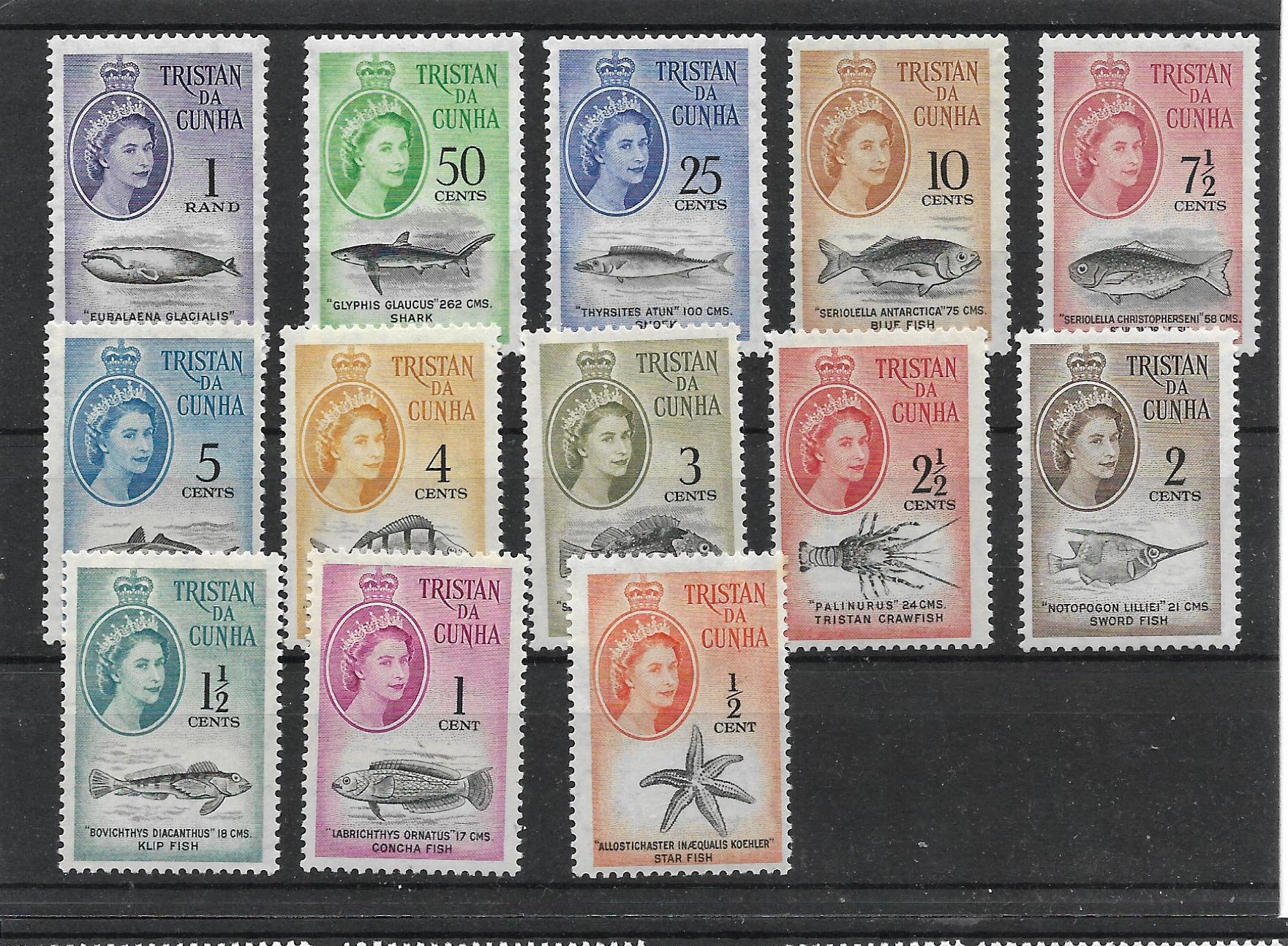 Tristan Da Cunha 1961 QEII Half Cent to One Rand unmounted mint. Cat £90. Half Cent is mounted mint.
