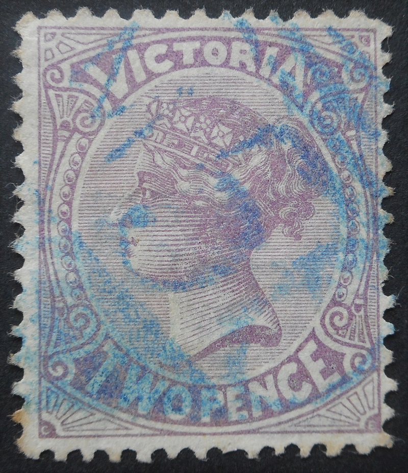 Victoria 1895 Two Pence with a WILLAURA Type 10A in blue postmark quantity
