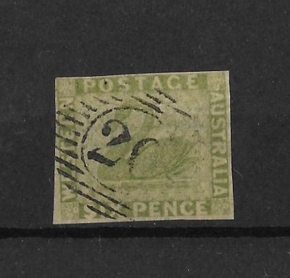 Western Australia 1860 Queen Victoria Six Pence fine used. SG 28. Cat £400.