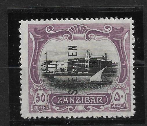 Zanzibar 1908 issue Fifty Rupees overprinted SPECIMEN mounted mint. SG 243s. Cat £160. Has a crease.