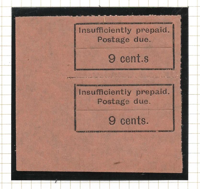Zanzibar 1926 Postage Due Nine Cents pair with Cent.s flaw SG D5a u/mint quantity